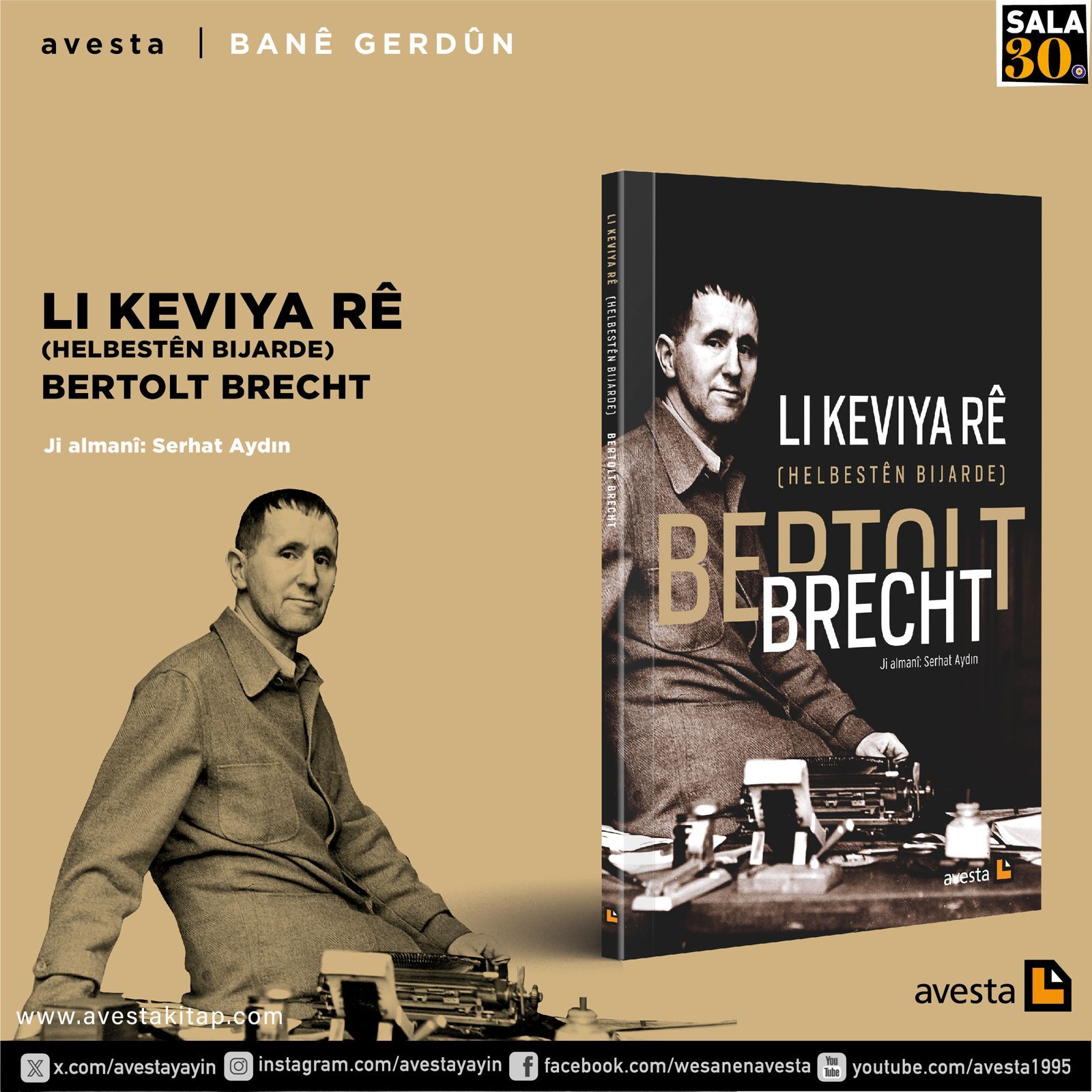 Pirtûka helbestên Bertolt Brecht bi navê “Li keviya rê” ji alîyê Serhat Aydın ve ji zimanê almanî hatiye wergerandin û ji Weşanxaneya Avestayê derketiye pêşberî xwîneran. Di pirtûkê de komeka helbestên bijarde yên helbestvanê cîhanî cih digire.